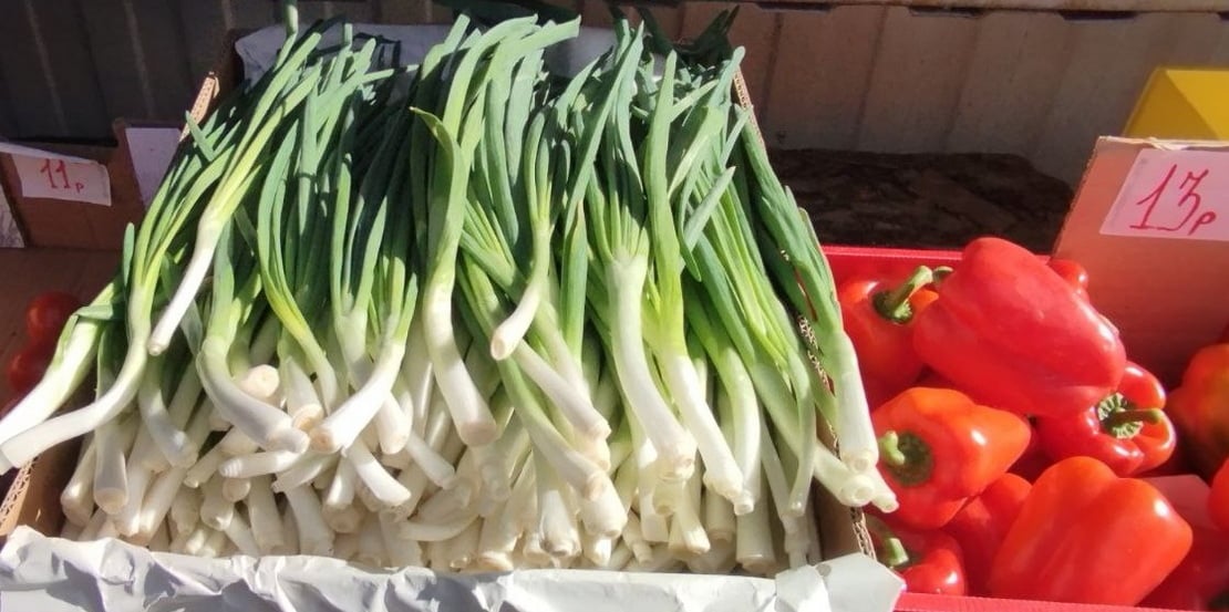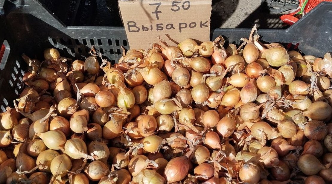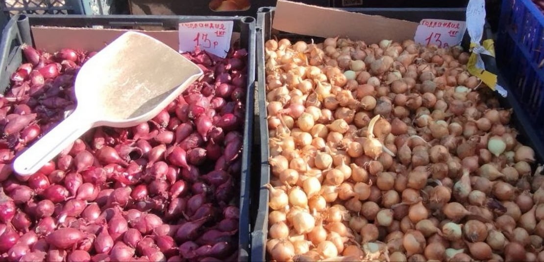 Также в продаже появился лук-севок в разнообразии. Цены варьируются от 7 до 18 рублей. Со слов продавца, лук-севок, привезённый из России, стоит 6 – 7 рублей, голландский – 17 – 19 руб.