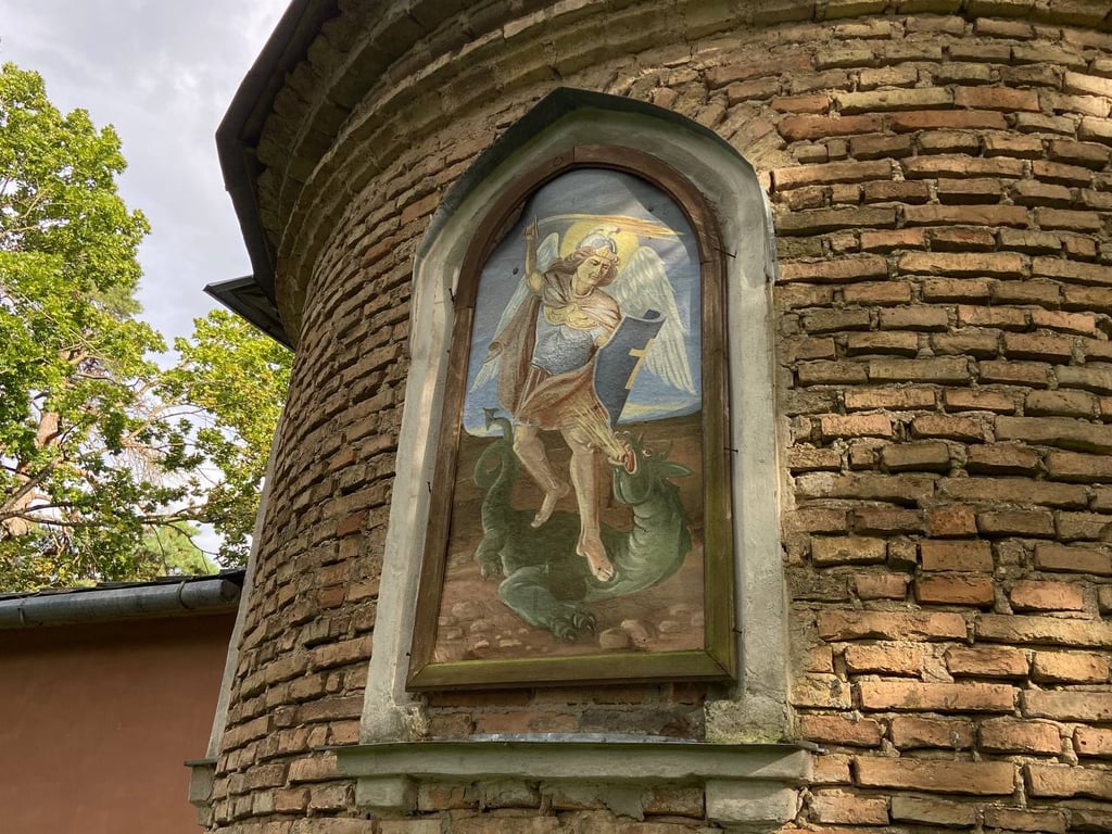 Часовня построена из желтого кирпича. Имеет полукруглую апсиду, в стенах которой — оконные проемы.