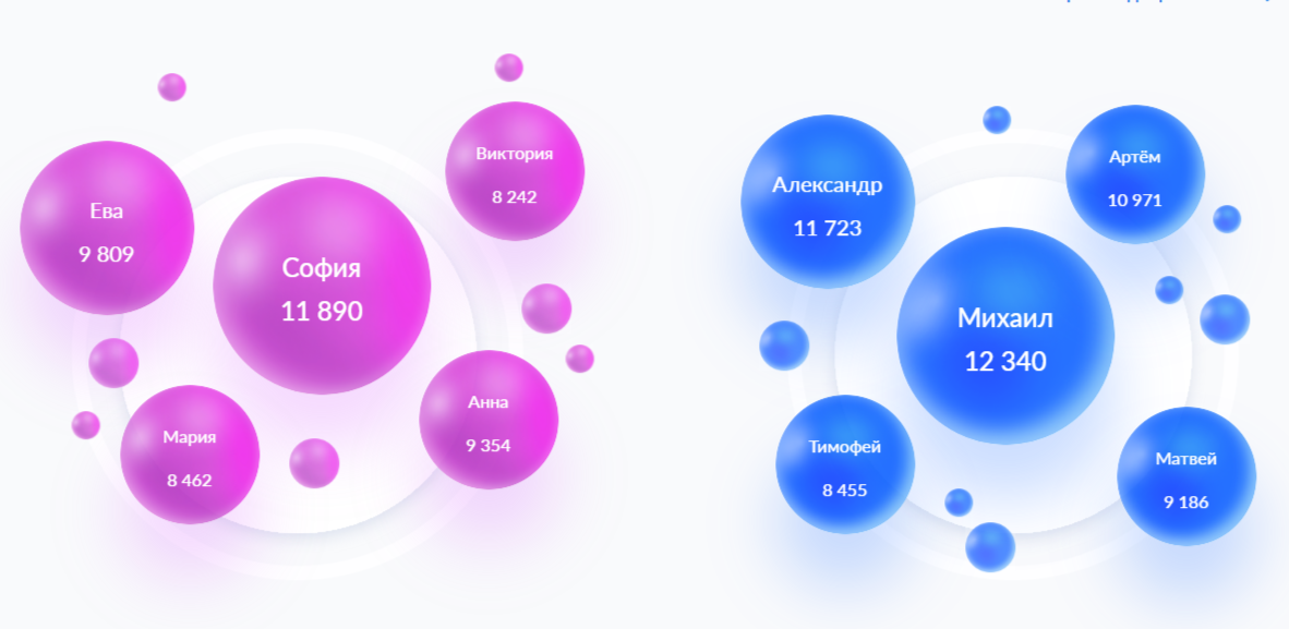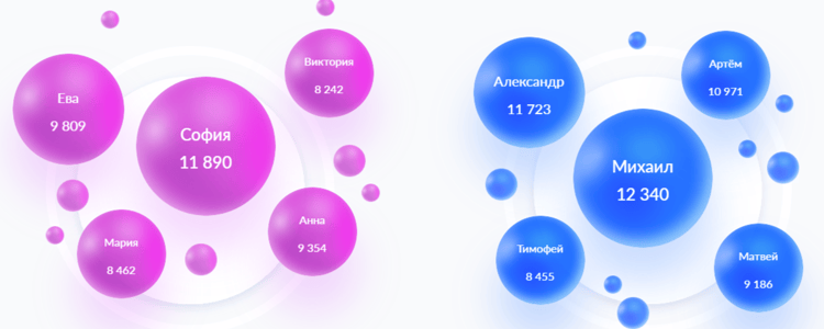 Согласно информационно-аналитическому порталу «Реестр ЗАГС», в 2024 году лидерами среди имен новорожденных остаются София и Михаил. Сейчас это самые популярные имена в России.