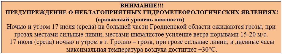 На среду в Гродненской области объявлен оранжевый уровень опасности