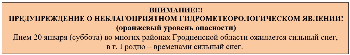 На субботу, 20 января, в Гродненской области объявлен оранжевый уровень опасности из-за сильного снега.