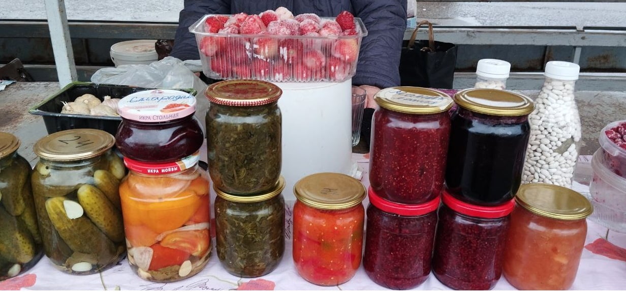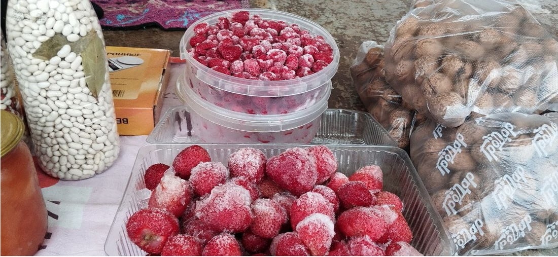 На рынке также продаются консервация и замороженные ягоды. Например, цена за килограмм замороженной клубники составляет 9 руб., малины – 8 руб.