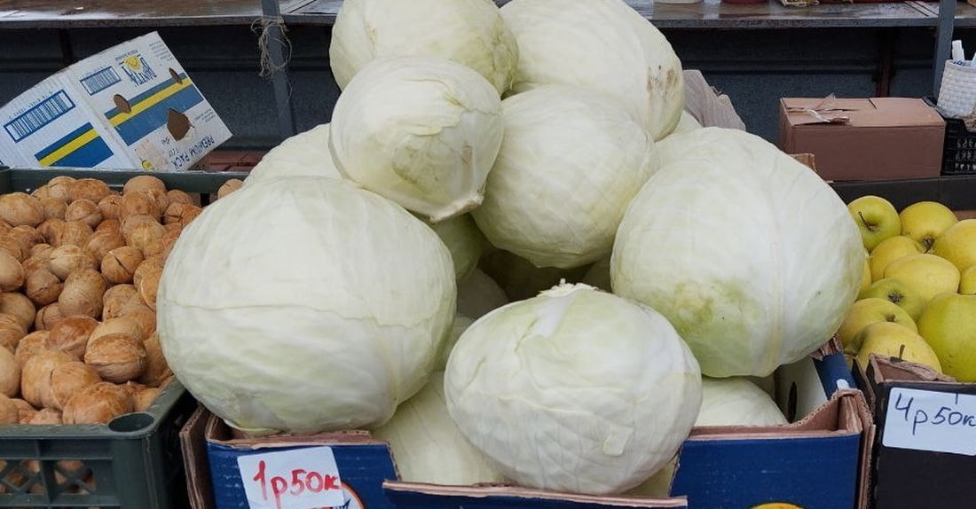 Капусту нового урожая из Узбекистана продают по 5 руб. за кило. Белокочанная капуста прошлого сезона стоит 1,50 руб., пекинская капуста – 4 руб., квашеная капуста также стоит 4 руб. Домашние яблоки можно купить за 2,50 руб. за кило, а импортные варьируются в цене от 1,50 до 4,50 руб.