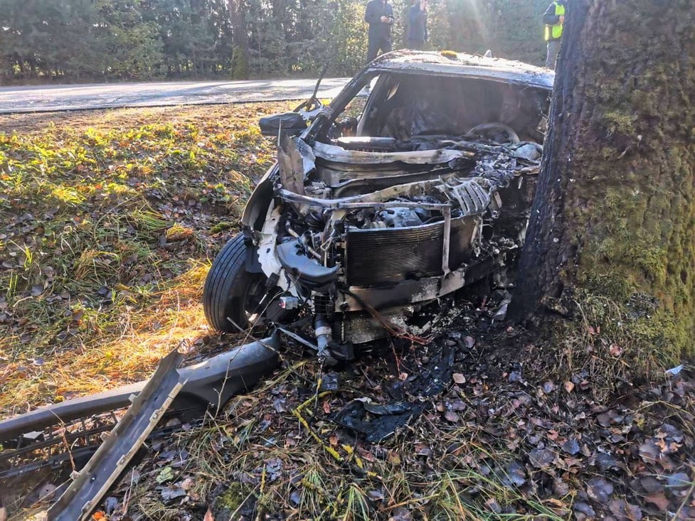 На трассе под Порозово автомобиль загорелся после ДТП, водитель погиб
