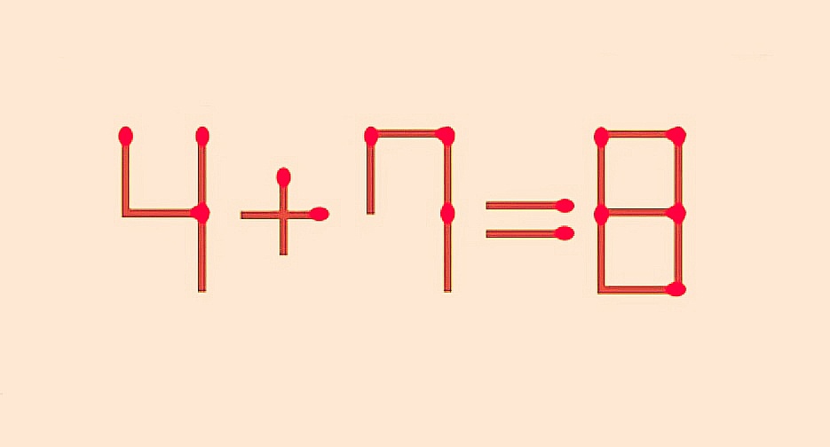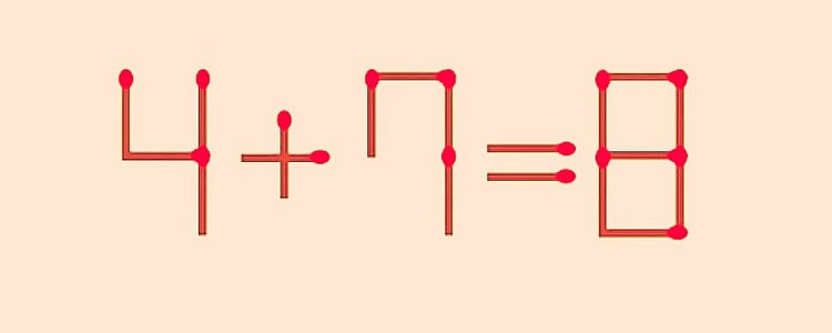 Новая головоломка: передвиньте 1 спичку в 4+7=8 и проверьте, насколько у вас получается шевелить извилинами