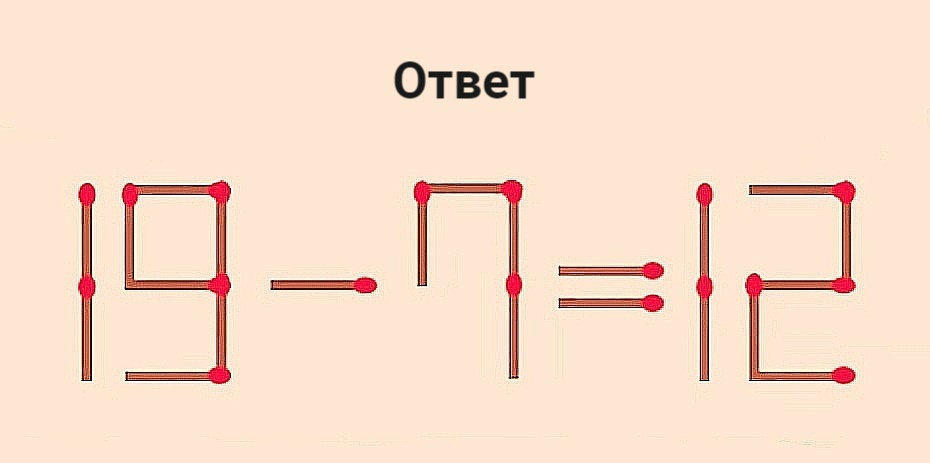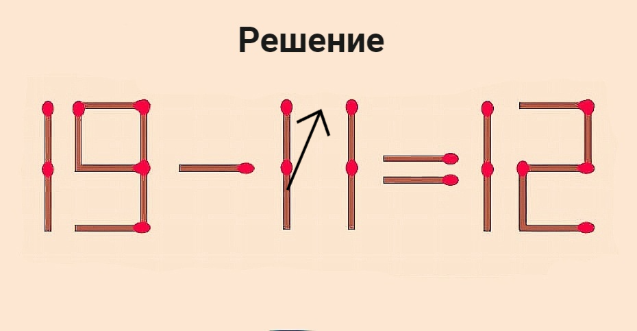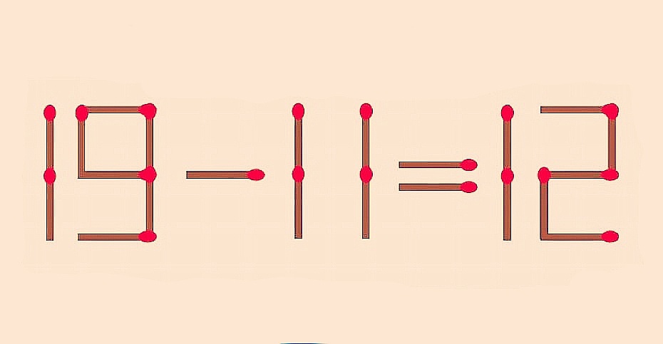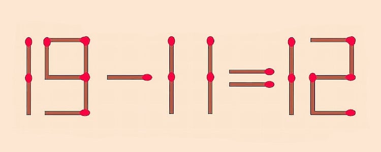 Новая головоломка. Переставьте 1 спичку, чтобы 19–11=12 превратилось в верное равенство