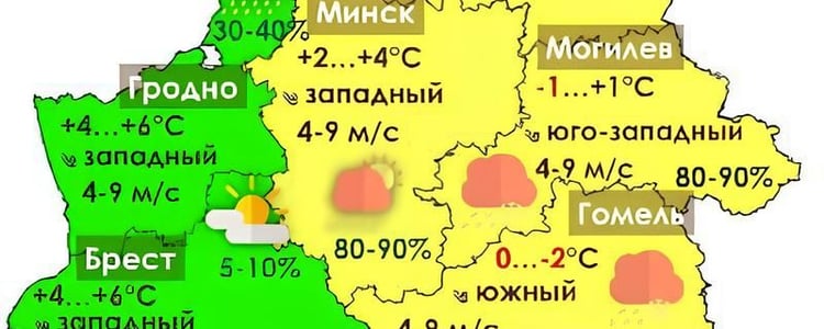 Прогноз погоды на 28-30 ноября по г. Гродно и Гродненской области от синоптиков Белгидромета