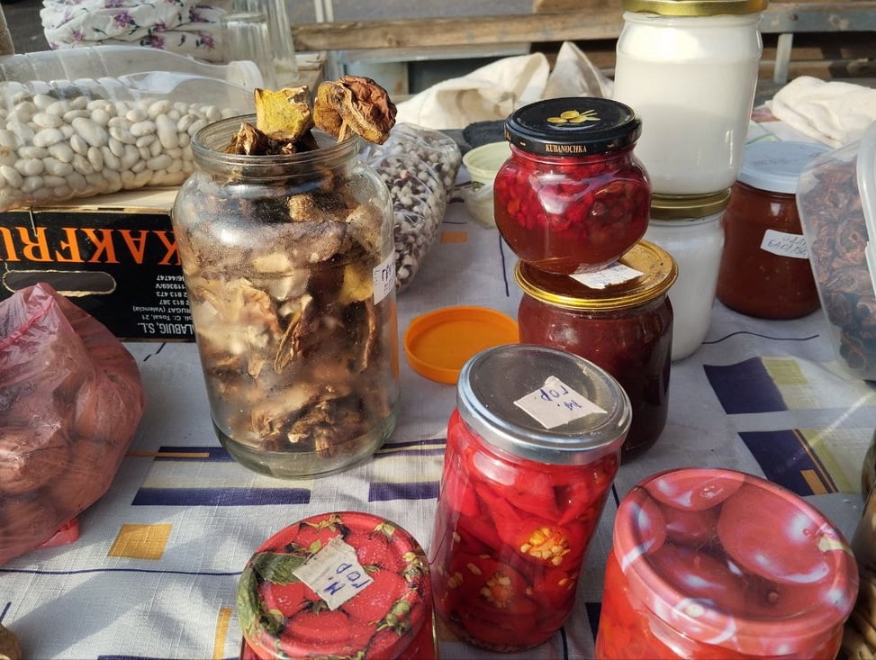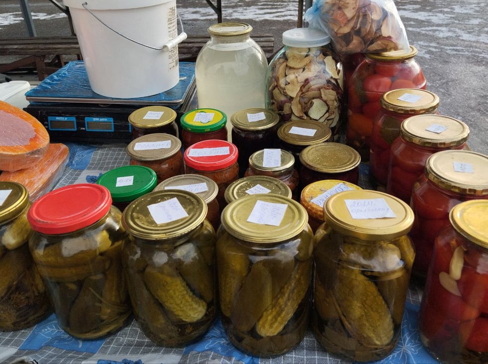 Сушеные грибы стоят 25 руб. за 100 г, пол-литровая банка щавеля вам обойдется в 6 руб., литровую банку огурцов можно купить за 7 руб., помидоров — за 6 руб., солянку — за 6 руб., 3-литровую банку березового сока — за 7 руб.