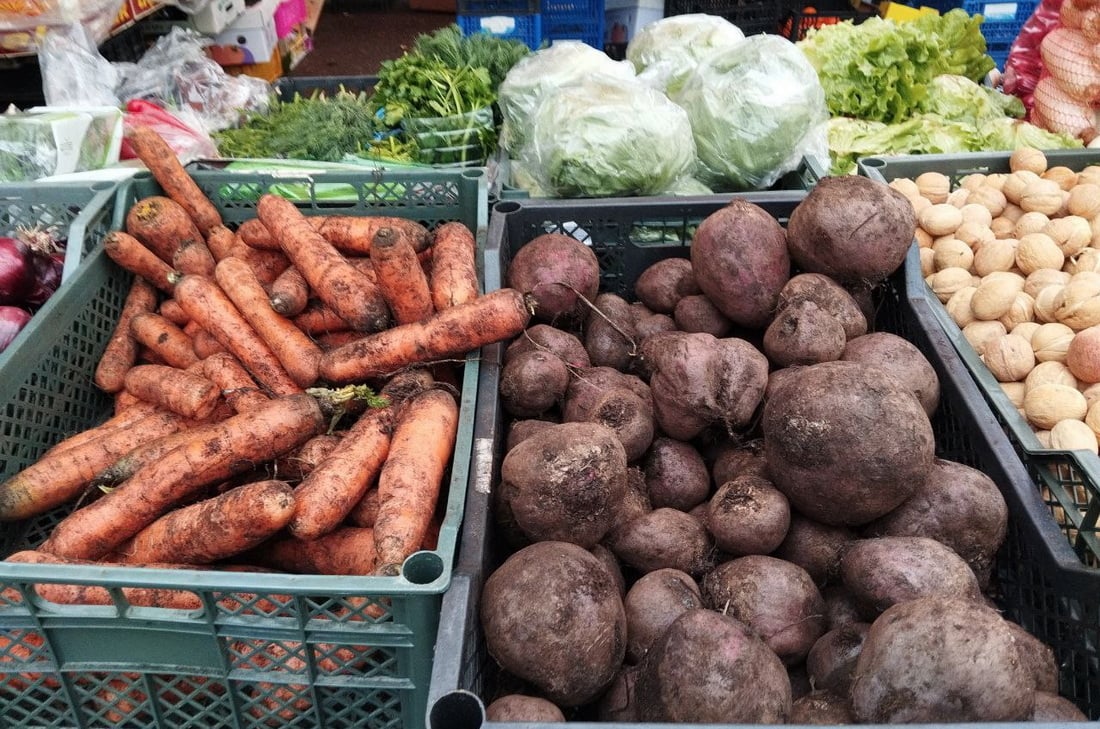 На центральном рынке Слонима цены на овощи и фрукты за последнюю неделю не изменились. Баклажаны стоят 12 руб., зеленый лук, укроп и петрушка — 18 руб., а цены на капусту, лук репчатый, морковь и другие популярные овощи и фрукты остаются без изменений.