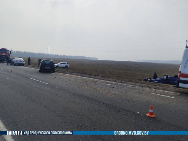 29-летний водитель, управляя автомобилем «Opel», двигался по автодороге Р-44. На 42 километре приступил к выполнению обгона впереди движущегося автомобиля «Citroen», под управлением 67-летнего водителя, при этом не убедился в безопасности манёвра, а именно в том, что 42-летний водитель движущегося позади него автомобиля «Mercedes» уже выполнял обгон его автомобиля, в результате чего допустил с ним столкновение, а он столкнулся с автомобилем «Citroen». После столкновения автомобиль «Citroen» и «Mercedes» съехали в правый по ходу движения кювет и опрокинулись, сообщает ГАИ Гродно.