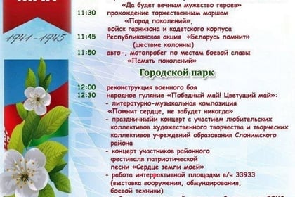 В Слониме 9 мая будет отмечаться День Победы с крестным ходом, митингами, возложением цветов и реконструкцией военного боя. Весь день будет насыщен культурными и образовательными мероприятиями, включа...