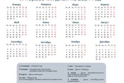 Правительство определило график переноса рабочих дней в 2024 году. Соответствующее постановление подписал премьер-министр Беларуси Роман Головченко, сообщает myfin.