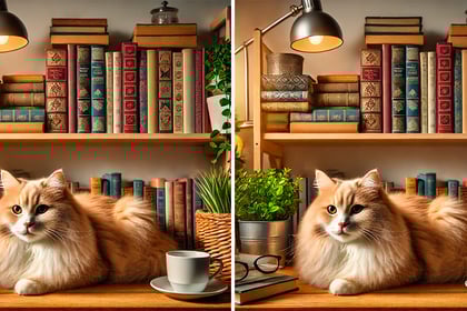 Перед вами милый пушистый котик в уютной домашней библиотеке.