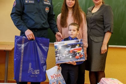 Позвонил маме и спасателям, взял кота и собаку и быстро покинул горящую квартиру. Второклассник из Мостов получил награды от спасателей