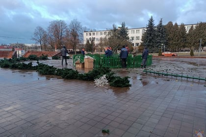 Из-за ветра упали четыре новогодние елки в двух городах. Спасатели ликвидируют последствия непогоды
