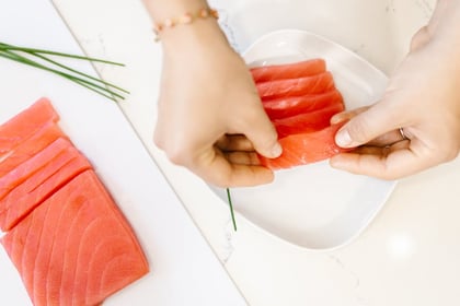 Новогодняя закуска: ёлочки из тунца и авокадо