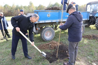 В Слониме заложили аллею из красных кленов. Фотофакт