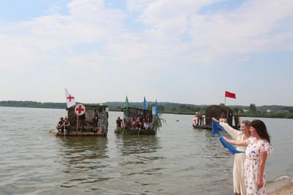 Необычные катера прибыли на водохранилище в день празднования фестиваля «Легендарные эпохи» в Зельве.