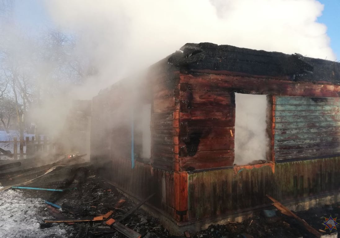 Калі байцы МНС прыбылі на месца, дах драўлянага будынка быў цалкам ахоплены полымем і часткова абваліўся.