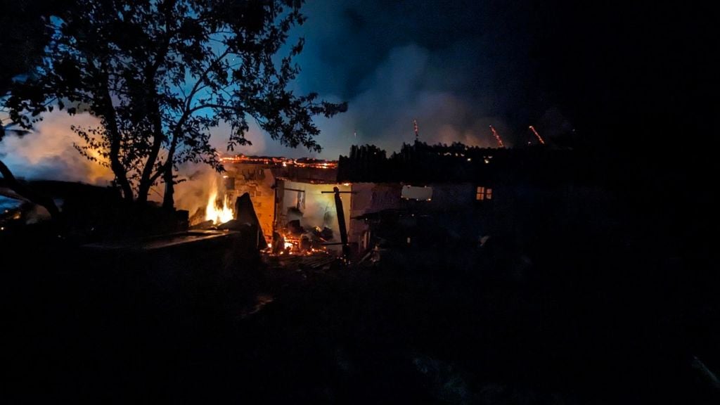 Гарыць гаспадарчая пабудова ў вёсцы Лугавая Гродзенскага раёна