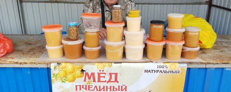 Сейчас на его прилавке можно найти липовый, гречишный, акациевый и цветочный мед. Однако пчеловод признается, что нынешний год оказался не самым удачным для медосбора из-за непредсказуемых погодных условий.