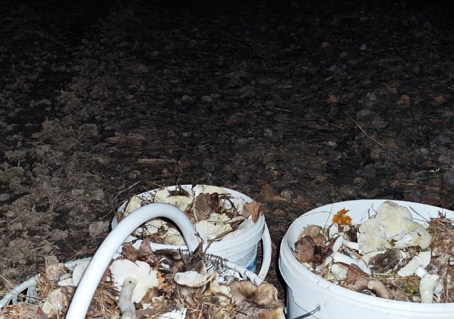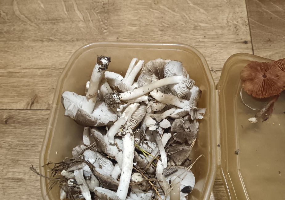 В пятницу, 22 ноября, грибнику удалось найти в лесу чешуйчатку жёлто-зелёную, мышат, рядовку-говорушку оранжевую, лаковицы розовую и большую, снежную сыроежку и полторы дрожалки. Он заметил, что берет в лесу все съедобные грибы.