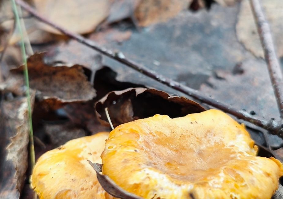 «22.11.2024 г. Решил снова после обеда ехать в тот же лес, что был в воскресенье в Минском районе. По приезде — красота, снег кругом, лужи во льду, из людей, кроме меня, ни души. Воздух уже по-зимнему свежий. Задач в этот раз уже вообще никаких для себя не ставил, кроме как пройти чуть дальше, чем в прошлый раз. Но такого и ожидать не мог: подзелёнки, зелёнки, опята. Все уже ледяные. Но ещё большей для меня неожиданностью стало найти в ноябре 2 лисички. Лес меня и в этот раз приятно порадовал. Прогулялся с 14:30 до 17:30 и отправился в сторону дома. На этом сезон этого года, вероятнее всего, для себя завершаю!» — написал Дмитрий.