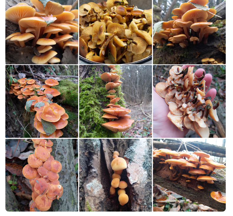 «Забежала на часок проверить зимние грядки, собрала 1,5 кг фламмулины, напугал серый зайчище, когда выходила из леса в темноте. В городе холодно, а в лесу тепло и тихо. И хоть наползалась среди веток, елок и увядшей крапивы, возвращаться в мир скорости и суеты не хотелось… Минский район», — отчиталась Татьяна Старкова.