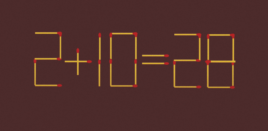 Переложите 1 спичку в 2+10=28. Этот тест проходят только избранные