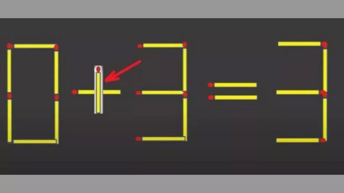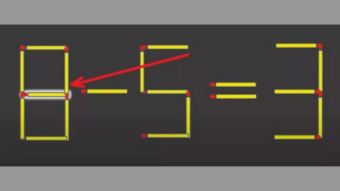 Переместите одну спичку у цифры 9, превратив её в 5. Эту же спичку добавьте к 0, превратив его в 8. В результате получится 8−5=3 — правильное равенство!
