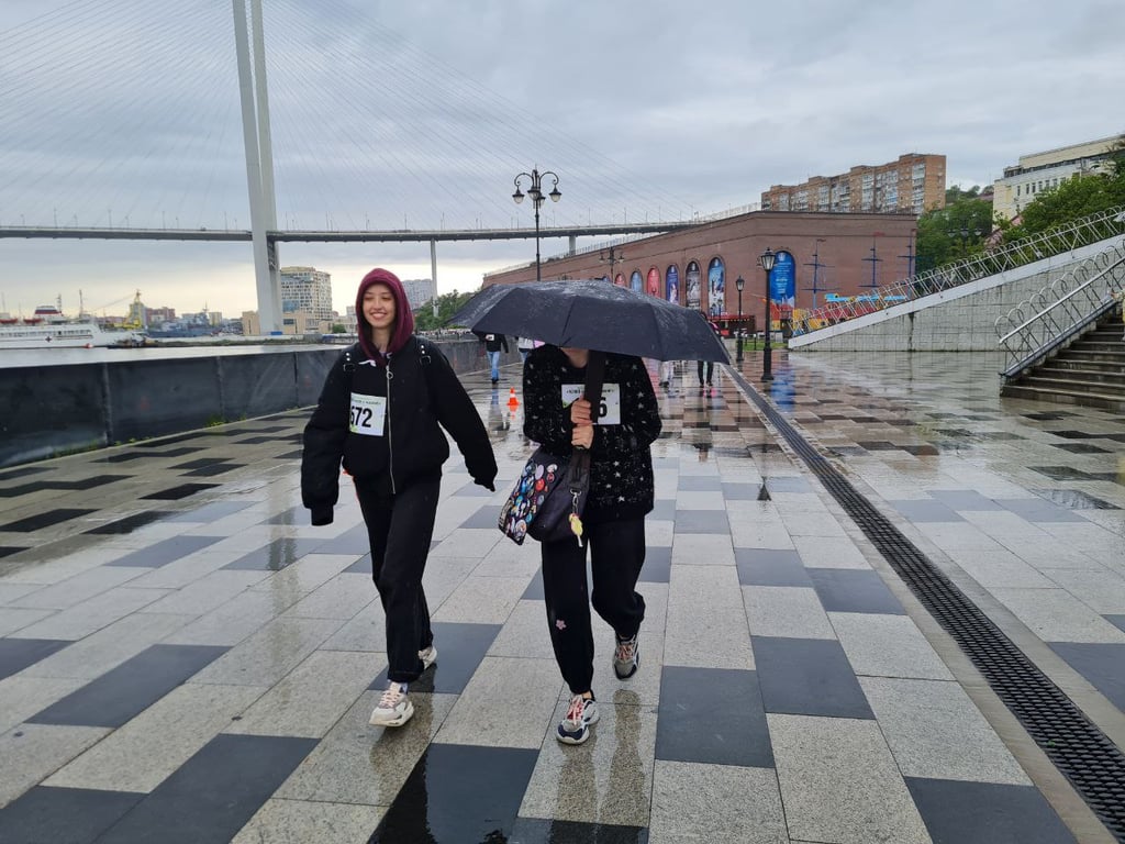 Несмотря на сильный дождь, масса жителей Владивостока пришла на набережную Цесаревича, чтобы принять участие в «Пешеходном марше Владивостока». Это физкультурно-массовое мероприятие приурочили к всероссийской акции «10 000 шагов к жизни».