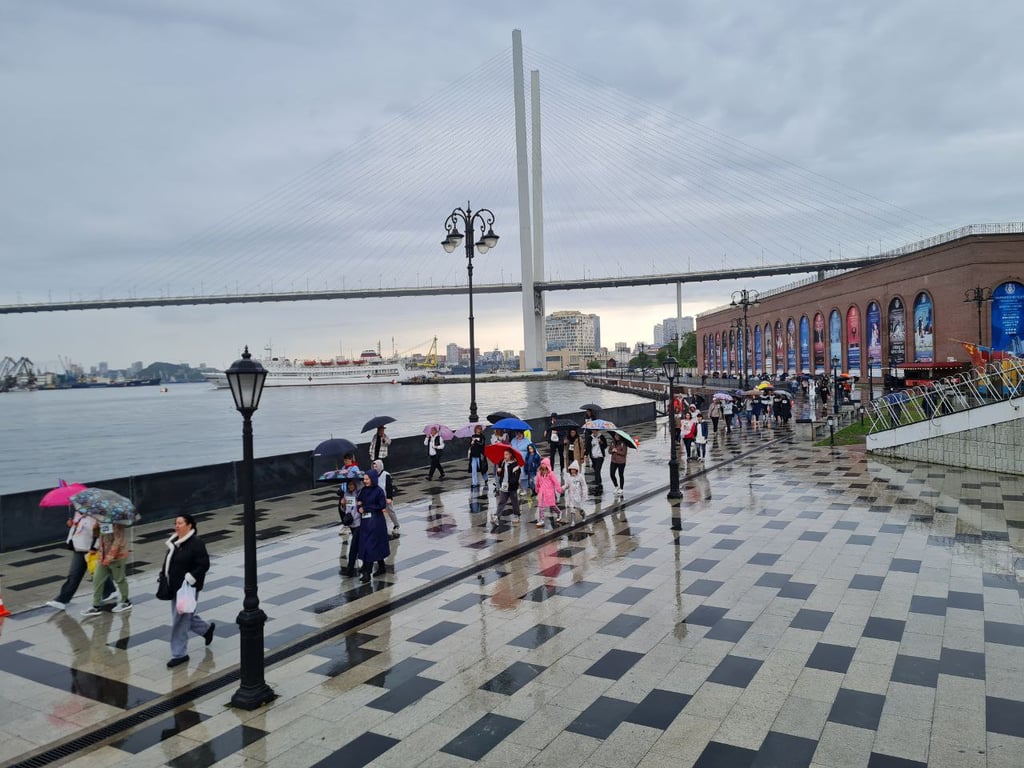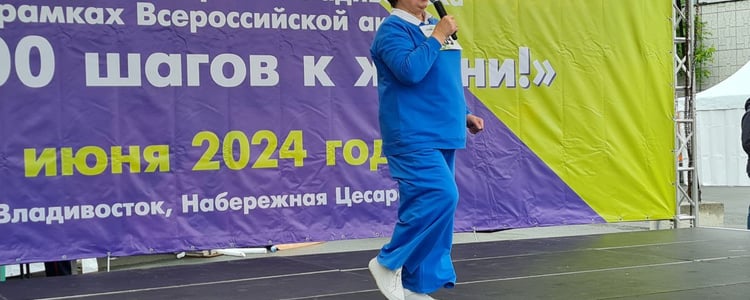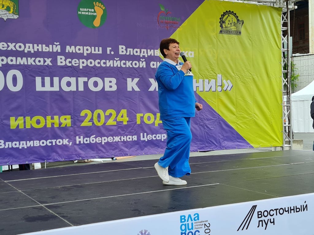 Несмотря на сильный дождь, масса жителей Владивостока пришла на набережную Цесаревича, чтобы принять участие в «Пешеходном марше Владивостока». Это физкультурно-массовое мероприятие приурочили к всероссийской акции «10 000 шагов к жизни». Масштабная программа развернулась на набережной Цесаревича. Здесь установили сцену, звукоусиливающее оборудование, шатры «Улица здоровья». В них любой желающий мог сдать анализ крови, проверить зрение,
