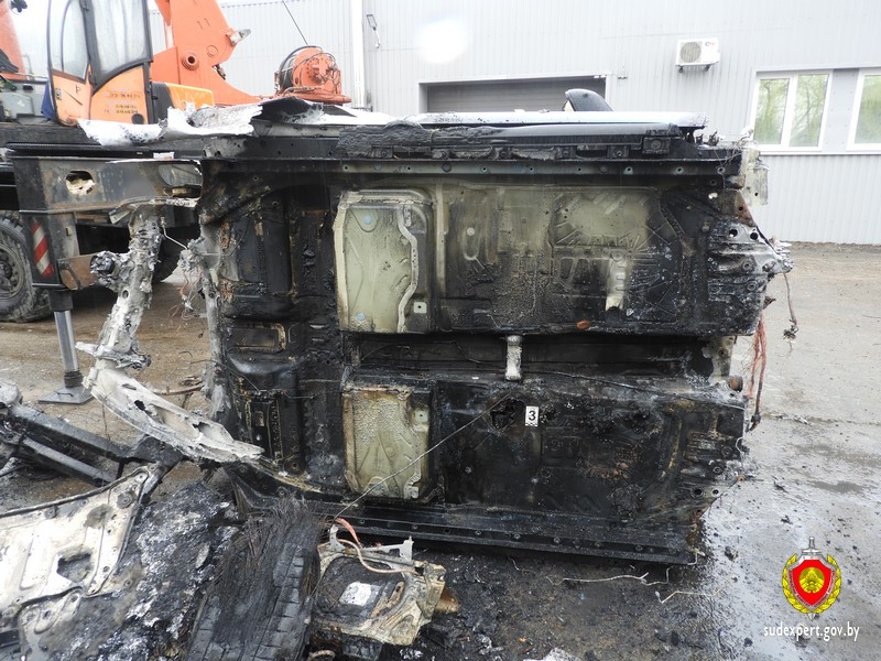 Судебные эксперты установили, что очаг пожара находился в зоне передней левой части основной высоковольтной аккумуляторной батареи автомобиля «Порше».