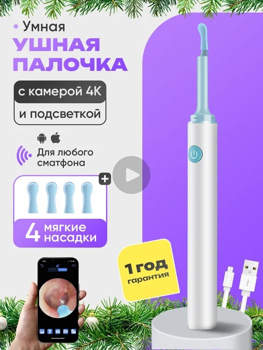 Такая палочка для чистки ушей оснащена встроенной камерой, которая, по утверждению производителя, позволяет легко и безопасно производить чистку ушей и при этом следить за процессом. Умная палочка имеет подсветку. Отмечается, что прибор подходит как для взрослых, так и детей.