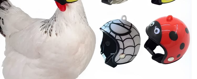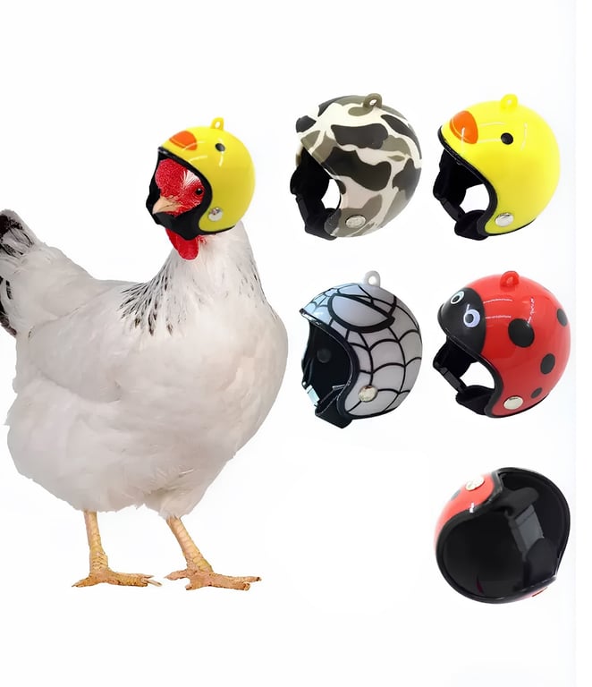 Казалось бы, зачем курам и петухам шапки и другие головные уборы? Ан нет. Оказывается, птицам они тоже нужны. «Шлемы могут обеспечить убежище большинству домашних животных в солнечные или дождливые дни, защитить их от прямых солнечных лучей и дождя и даже уменьшить тяжесть травм головы и головного мозга», — констатирует производитель.