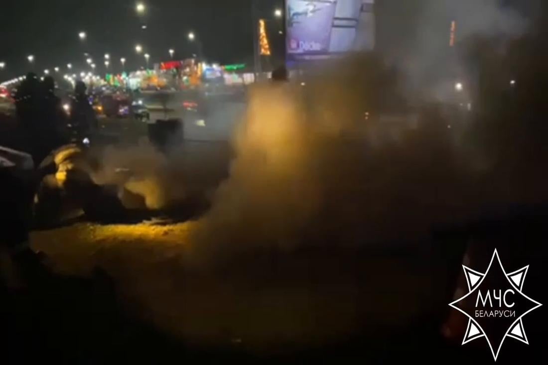 На улице Белуша в Гродно произошло возгорание в подземной теплокамере. На место происшествия выехали шесть отделений спасателей МЧС.