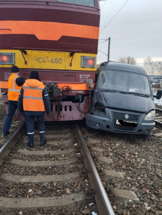 Поезд столкнулся с микроавтобусом ГАЗель на железнодорожном переезде Койданово-Негорелое