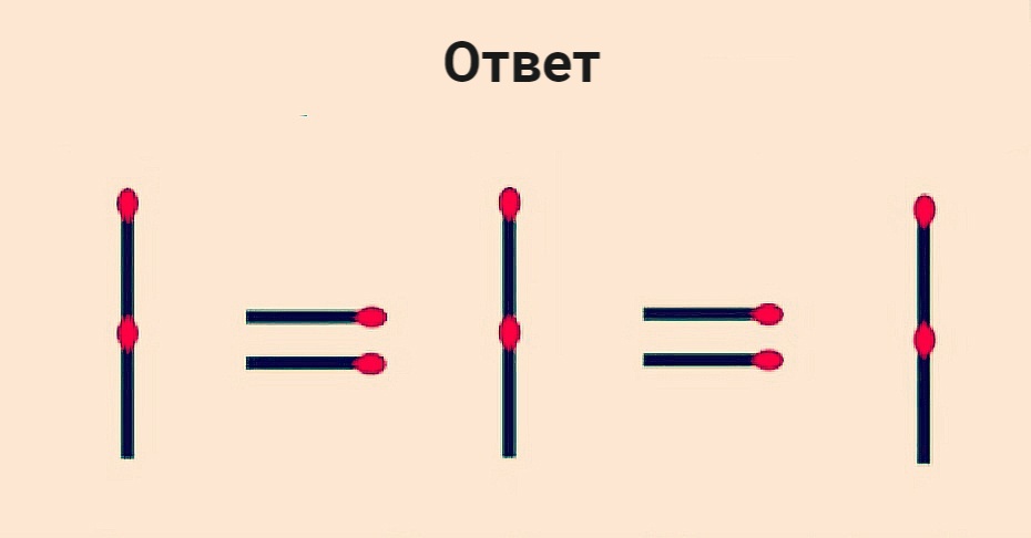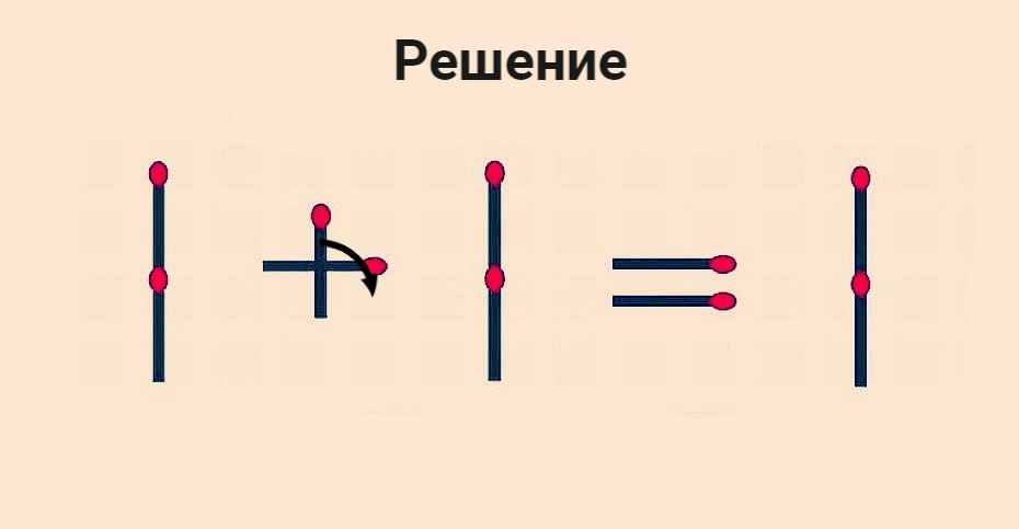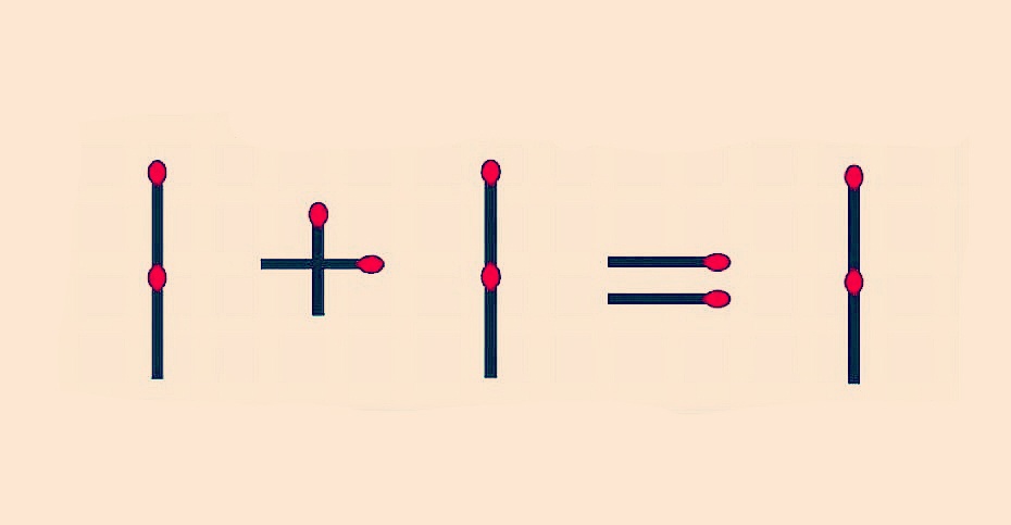 Новая головоломка для асов: переставьте в 1+1=1 всего 1 спичку, чтобы равенство стало верным. Решение головоломок способствует развитию воображения, зрительной памяти, внимания, усидчивости, терпения и настойчивости как у детей, так и у взрослых.