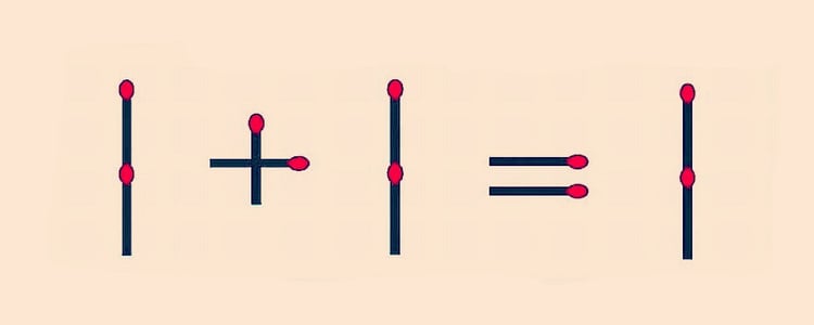 Сегодня понедельник, и мы не будем вас загружать сложным заданием. Головоломка простая: 1+1=1. В ней нужно переставить 1 спичку, чтобы равенство стало верным. Если на это у вас уйдет менее 10 секунд — вам, скорее всего, можно не беспокоиться о старении своего мозга.
