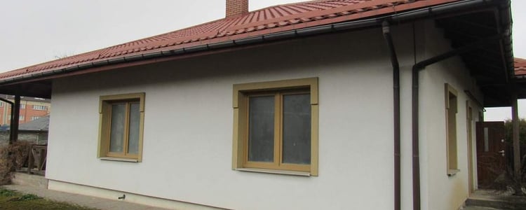 Общая площадь дома — 120,8 м2. Имеется терраса и два теневых навеса. Есть в доме и окна в пол.