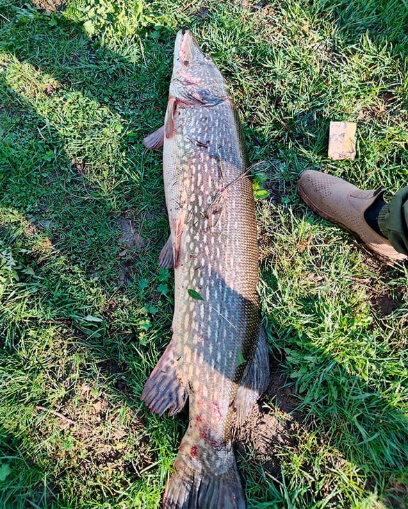 Посмотрите, какую щуку-гиганта поймал рыбак из Ошмян. Живой «крокодил» на крючке