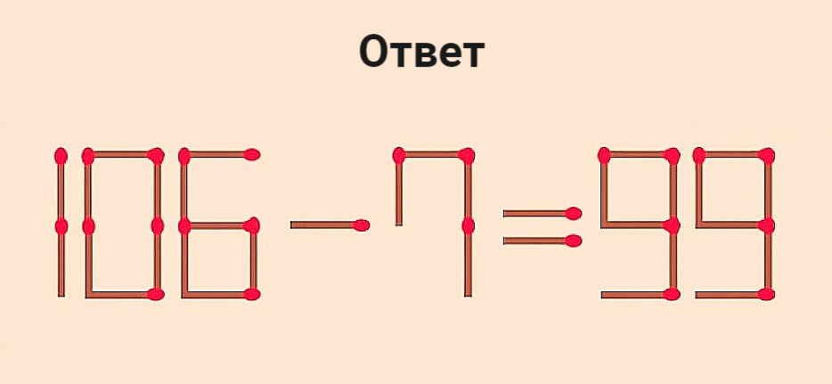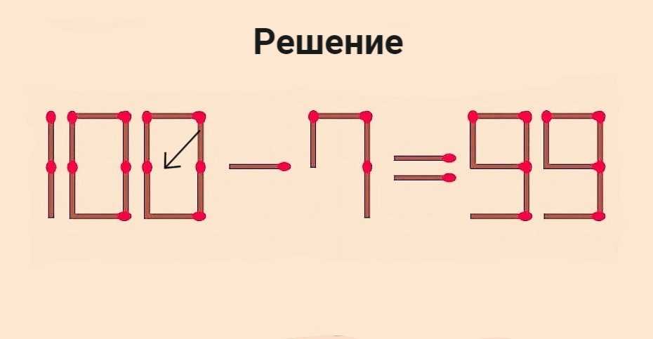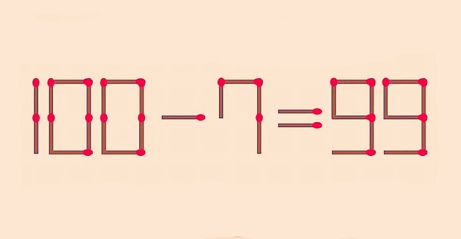 Посоревнуемся умами? Переставьте 1 спичку в 100–7=99, чтобы равенство стало верным