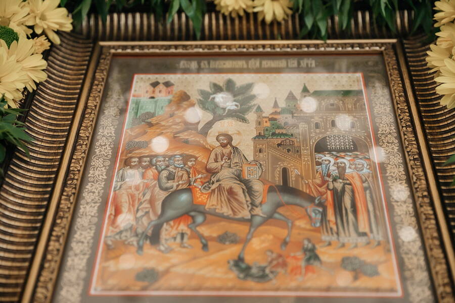 На следующий день Иисус в сопровождении своих учеников въехал в город на ослике — символе мира. Горожане встретили его как настоящего царя: пели хвалебные песни и устилали дорогу пальмовыми ветвями, символизировавшими торжество и царскую власть.