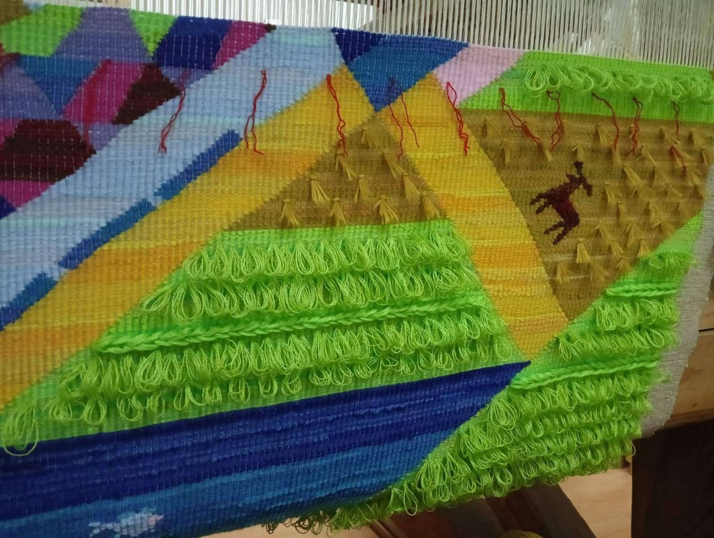 Для создания полотна использовались нити, которые выпускает Слонимская камвольно-прядильна фабрика. Понадобилось более 800 метров шерстяных и хлопковых ниток и пряжи разных цветов и оттенков. А создано масштабное полотно в технике одностороннего перебора на уникальных кроснах, которые еще в 1981 году изготовил Феликс Шунейко, отец мастерицы.