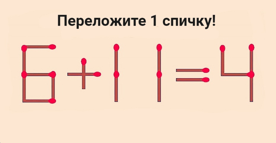 Проверьте, обладаете ли вы даром прозорливости. Переложите 1 спичку в примере 6+11=4 за 10 секунд