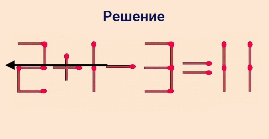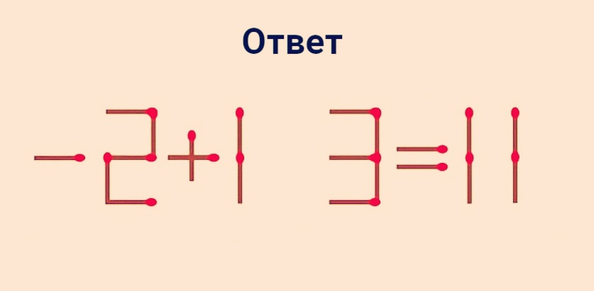 В головоломке следует лишь найти «неверную» спичку и переставить ее на такое место, чтобы уравнение стало правильным.