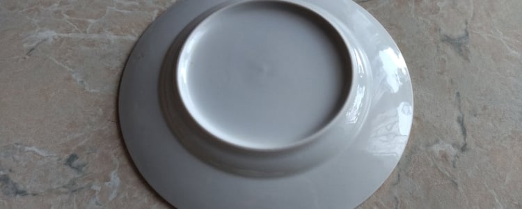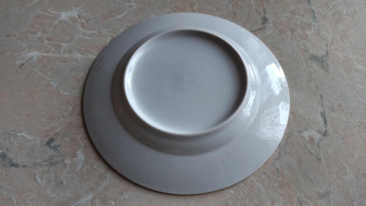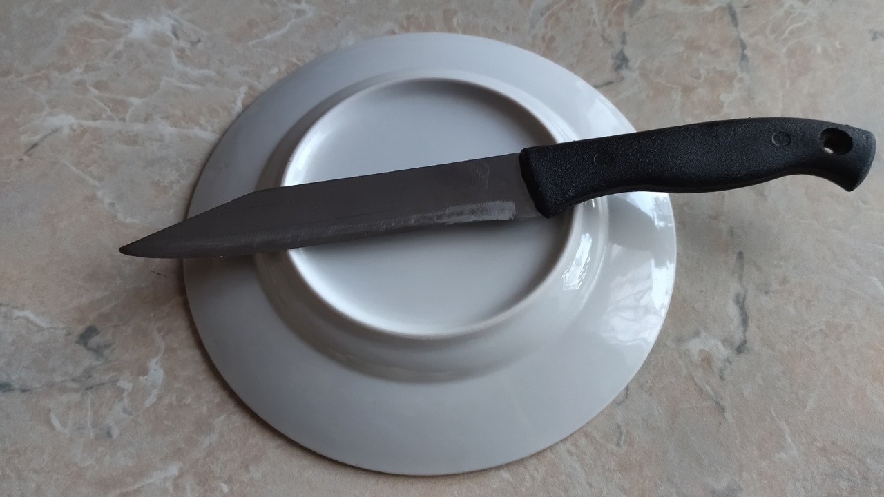 Для заточки ножа потребуется тарелка, только не пластиковая или стеклянная, а обычная керамическая. Тарелку переворачиваем вверх дном.