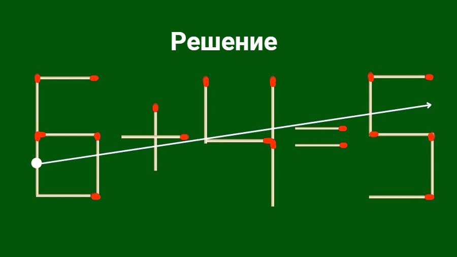 И только самые догадливые могут справиться с ней за 10 секунд. По условию в примере 6 + 4 = 5 следует переставить на другое место только 1 спичку.