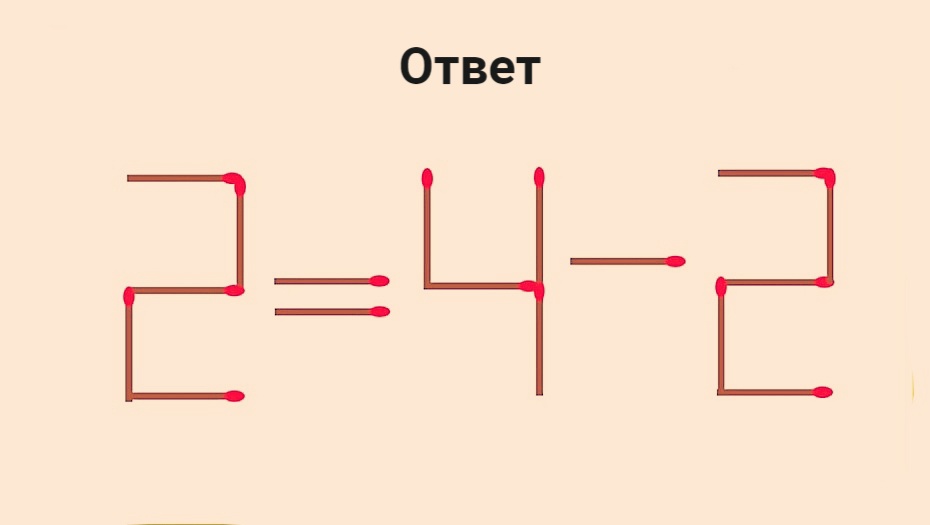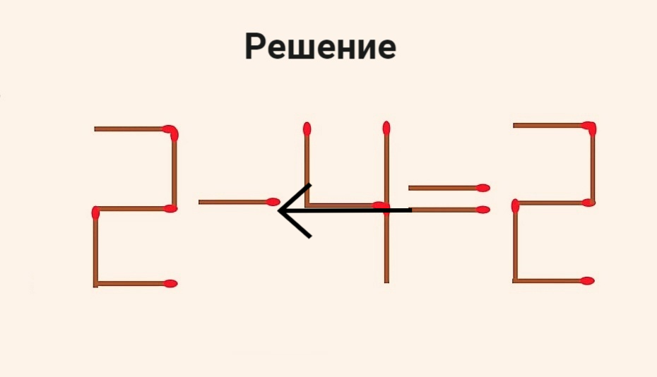 Решите 2–4=2, переставив 1 спичку