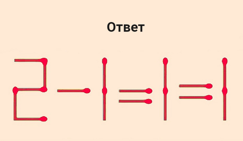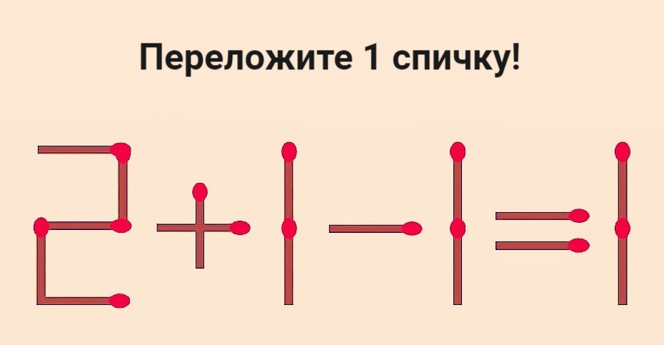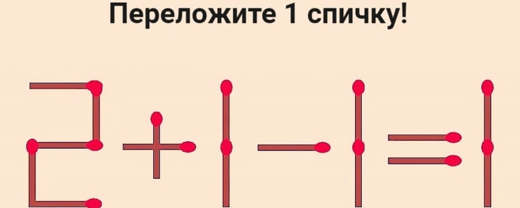 Возможно, вы интеллектуальный гигант и не подозреваете об этом? У нас есть способ это проверить. И поможет выяснить истину головоломка со спичками, которая кажется на первый взгляд простой. В примере 2+1-1=1 нужно переложить на другое место только 1 спичку. Можете попробовать для наглядности использовать настоящие спички.